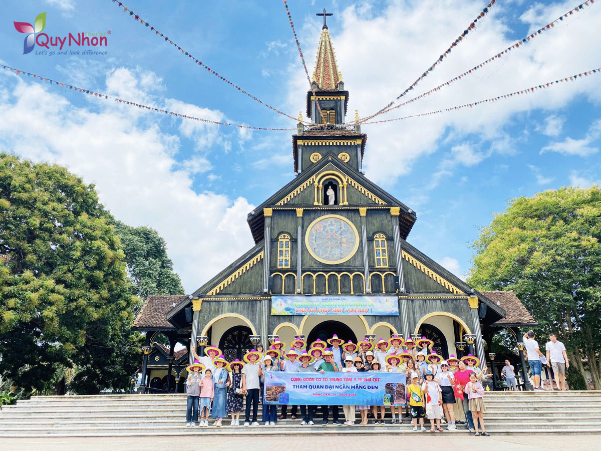 Du khách Quy Nhơn Tourist check in Nhà thờ gỗ Kon Tum trong hành trình tour du lịch